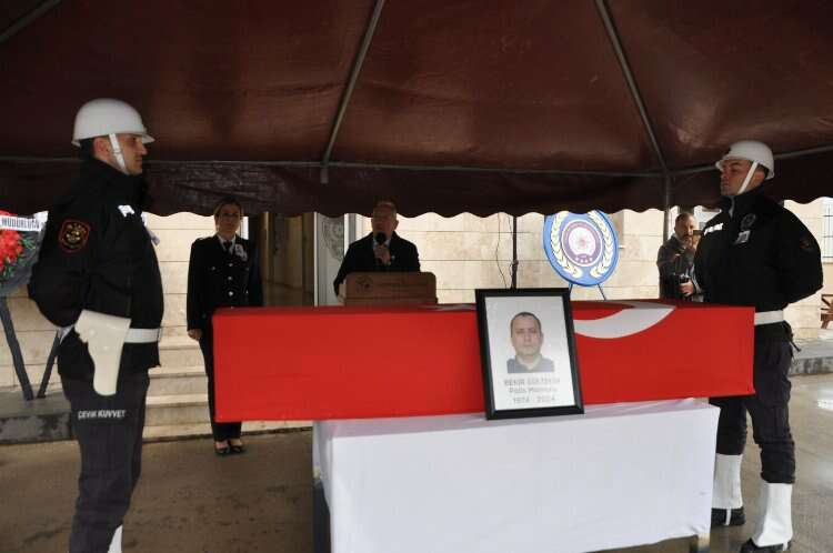 İlçe Emniyet Müdürlüğü önündeki törene Gültekin'in yakınları, Kaymakam Orhan Altun, mesai arkadaşları ile askeri erkan katıldı.