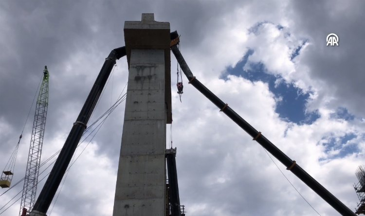 Çalışmaların sürdüğü Aydın-Denizli Otoyolu'ndaki viyadük inşaatında malzeme taşıyan vincin kopan bomu kolona çarptı.