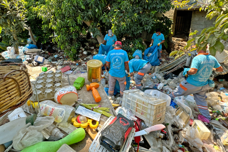 Temizlik İşleri Müdürlüğü ekiplerince yapılan çalışmada, sokaklardan toplanan çöplerin bir konutta biriktirildiğini belirlendi.