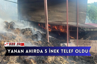Ekiplerin müdahalesiyle söndürülen yangında 5 inek telef oldu, 2 inek kurtarıldı.