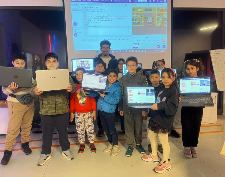 Öğrencilerin sorularını ChatGPT'ye yönlendiren Bahar, bu teknolojilerin günlük yaşamdaki potansiyel kullanım alanlarını gösterdi. Teknolojinin gücünü keşfetme ve yaratıcı düşünme yeteneklerini geliştirme fırsatı sunuldu. Küçük yaştaki katılımcılar, pratik deneyimler ve interaktif aktivitelerle, yapay zeka ve kodlama alanındaki bilgi ve becerilerini artırdı.