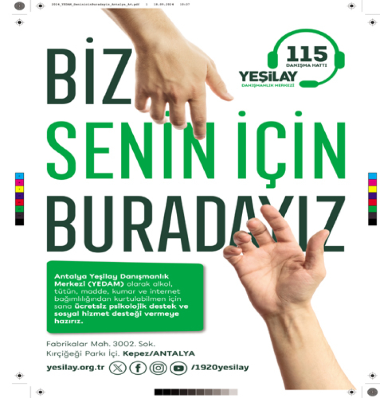 Türkiye’nin 81 ili ve KKTC’de olmak üzere toplam 107 şubesi bulunan Yeşilay Danışmanlık Merkezi, (YEDAM) bağımlı bireylere ve yakınlarına ücretsiz ayaktan psikososyal destek hizmeti veriyor.