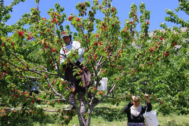 İlçe genelinde yaklaşık 2 bin 500 dekar alanda yetiştirilen kirazda ilk hasat, Koramşalı köyündeki bahçelerde yapıldı.