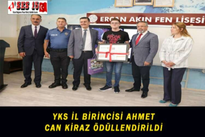 YKS İL BİRİNCİSİ AHMET CAN KİRAZ ÖDÜLLENDİRİLDİ