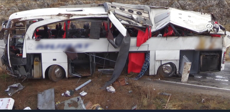 Kazada yolcu otobüsündeki F.K. (41) ve N.M.K. (61) hayatını kaybetti, 21 kişi yaralandı.