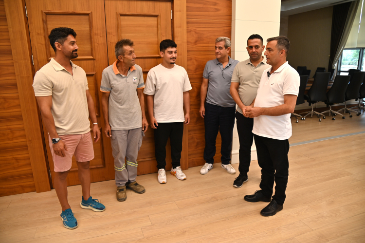 Cüzdanı Side Mahallesi Muhtarı Osman Tüter'e teslim ederek, sahibine ulaştırılmasını sağlayan Tunç'u, İlçe Belediye Başkanı Niyazi Nefi Kara makamında kabul etti.