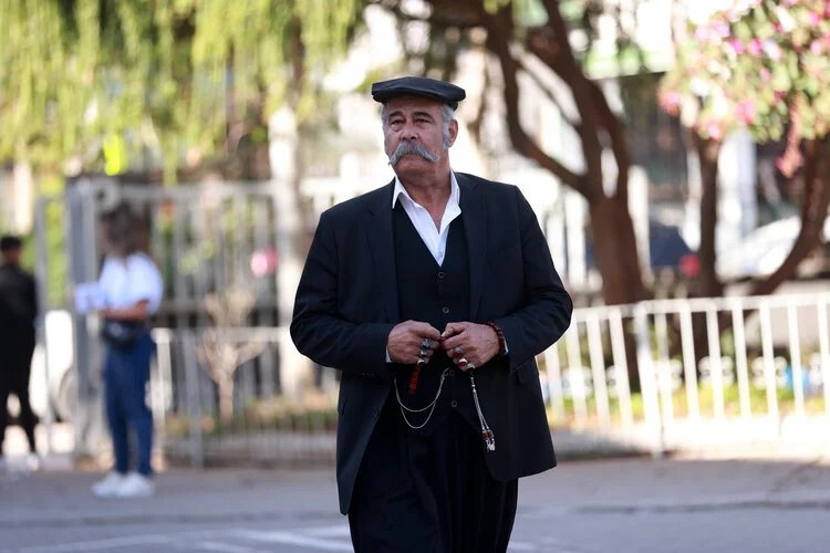Kentin yöresel kıyafetlerini giyen 63 yaşındaki emekli Şahin Ünal, merkez Çukurova ilçesi Toros Mahallesi'nde Buhara Ortaokulunda oyunu kullandı.