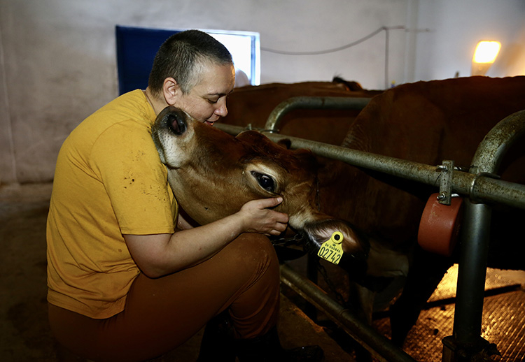 Bekdemir, hayvanlarının her birine ayrı isim koyduğunu belirterek, "İlk göz ağrımdan biridir 'Çilek' isimli buzağı. Baharda gelen hayvanımızın birinin adını 'Yazgülü' koydum, birinin önlerine gelen saçları vardı, kınalı şeklindeydi, adını 'Kınalı' koydum. Biri yere basmaya tedirgindi, adını 'Nazlı' koydum. Her birinin ayrı hikayesi var." dedi.