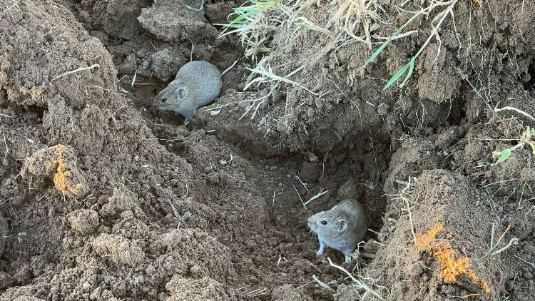 Isparta'nın Keçiborlu ilçesinde tarla fareleri, bir çiftçinin arpa tarlasında zarara neden oldu.