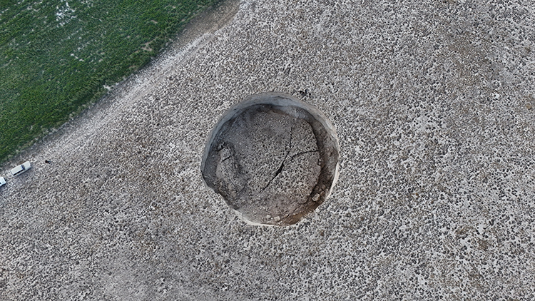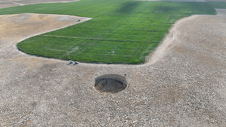 Konya'nın Karapınar ilçesinde 100 metre çapında ve 10 metre derinliğinde yeni bir obruk oluştu.