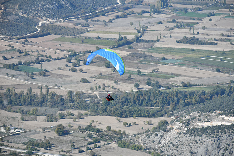 Bilecik'in Gölpazarı ilçesinde, 29 Ekim Cumhuriyet Bayramı etkinlikleri kapsamında "Ata'ya Saygı Yamaç Paraşütü Uçuşu" gerçekleştirildi.