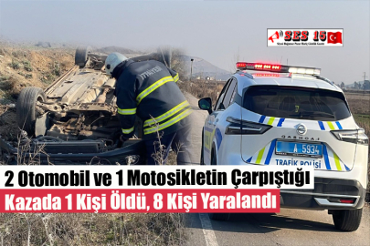 2 Otomobil ve 1 Motosikletin Çarpıştığı Kazada 1 Kişi Öldü, 8 Kişi Yaralandı