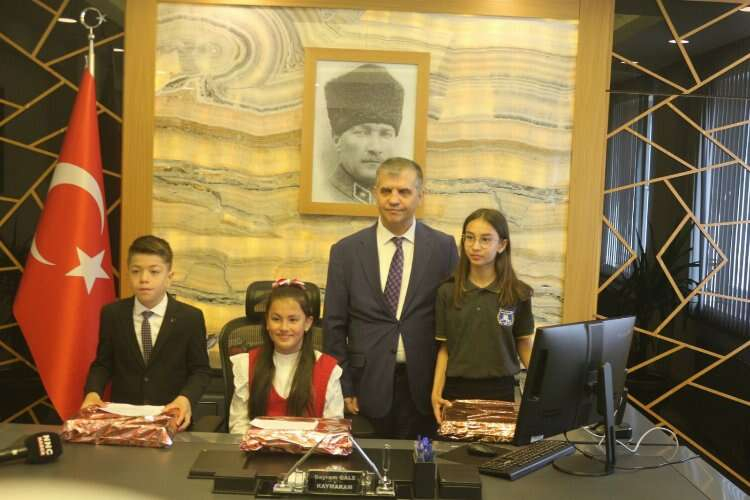 Kaymakam Gale, tüm çocukların 23 Nisan Ulusal Egemenlik ve Çocuk Bayramı’nı kutlayarak, ziyaretine gelen öğrencilerden Ecemsu Ünal, Ela Göral ve Emir Coşkun’a çeşitli hediyeler vererek, kendilerine teşekkür etti.