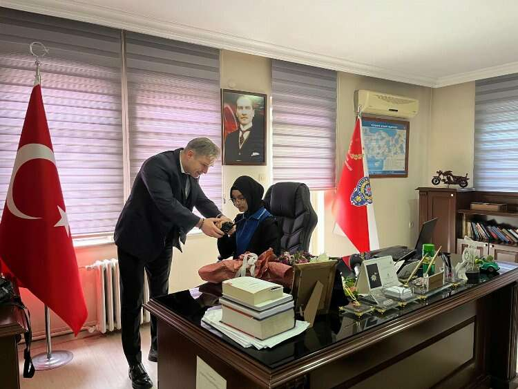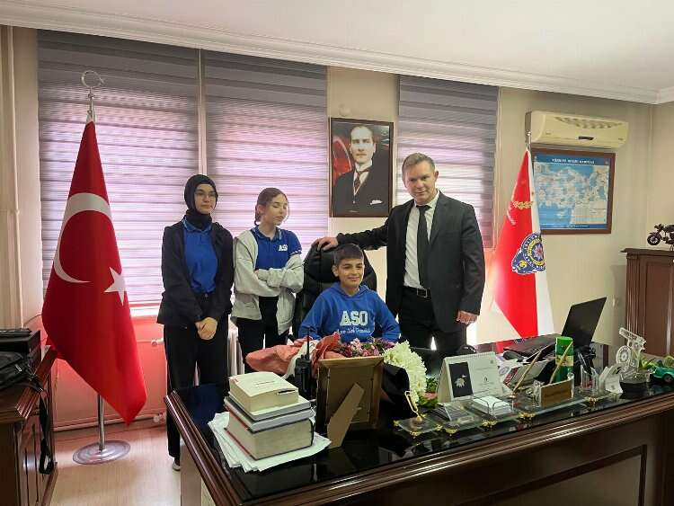 Bucak İlçe Emniyet Müdürü Özkan Büyükyılmaz ise koltuğunu kendisini ziyaret eden Ayşesak Ortaokulu öğrencilerinden Elif Nur Güzel ve Parmida Azizibai ve Muhammed Nesim Akıncı’ya bıraktı. Ayşe Sak Ortaokulu Fen ve Teknoloji Öğretmeni Sebahattin Elibol da öğrencilere eşlik etti.
