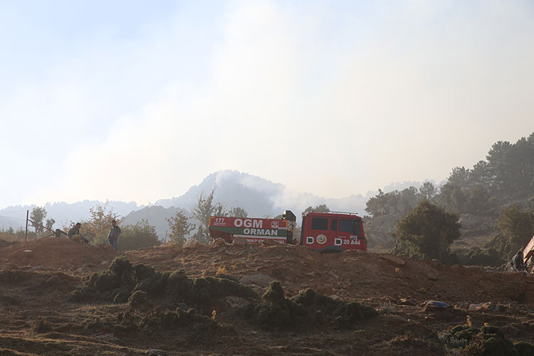 Denizli'nin Merkezefendi ilçesinde 24 Ekim'de başlayan, bin metrenin üzerinde rakıma sahip sarp ve kayalık bölgede etkili olan yangının durdurulması için arazi şartlarına karşı mücadele veriliyor.
