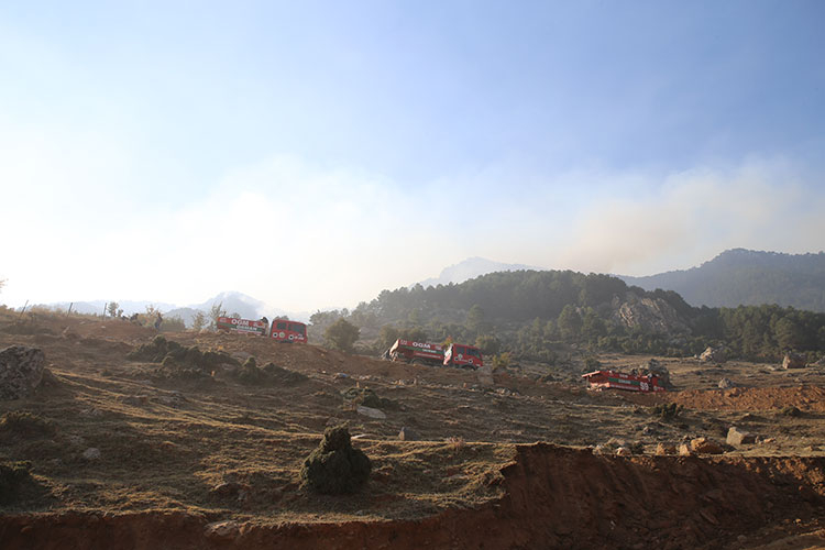 Yangının bin metrenin üzerinde rakıma sahip bölgede etkisini sürdürmesi nedeniyle arazi şartlarına karşı mücadele veriliyor.