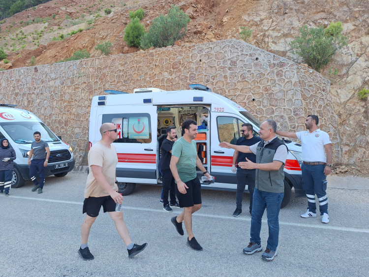 Kurtarılan 5 personel, sağlık ekibinin olay yerindeki ilk müdahalesinin ardından helikopterle hastaneye kaldırıldı.