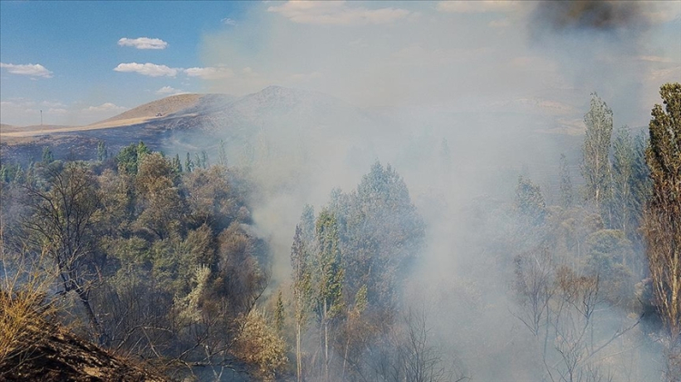 Sivas'ın Şarkışla ilçesinde ağaçlık alanda çıkan yangını söndürme çalışmaları devam ediyor.