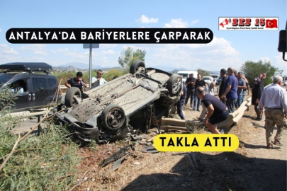 Antalya'da Bariyerlere Çarparak Takla Attı