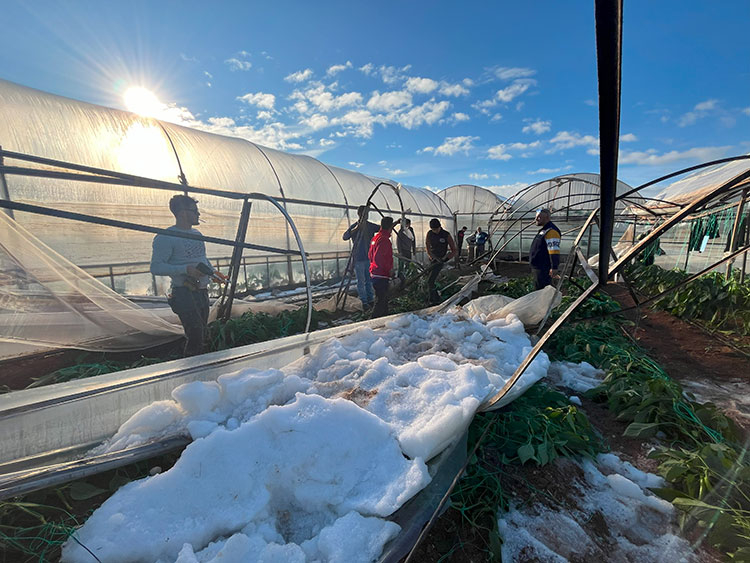 Dolu ve sağanak kısa sürdüğü için zararın boyutunun yüksek olmadığını dile getiren Kökce, "İki mahallemizdeki seralarda zarar var. Çiftçilerimiz zararlarını kendi imkanlarıyla gidermeye çalışıyor." dedi.