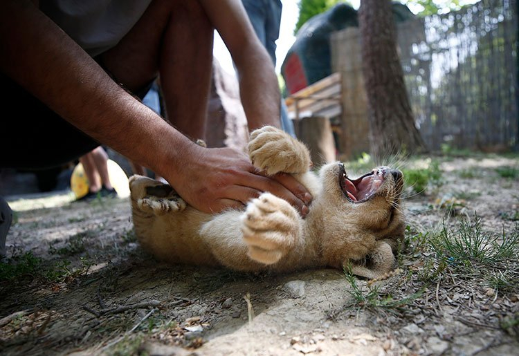 Aslan bakıcısı İsmail Aydın, yavruların 60 günlük olduğunu söyledi.