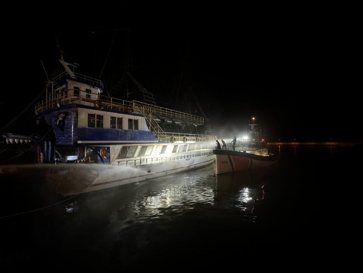İhbar üzerine bölgeye gelen sahil güvenlik ile itfaiye ekiplerinin karadan ve denizden müdahalesiyle yangın söndürüldü.