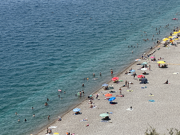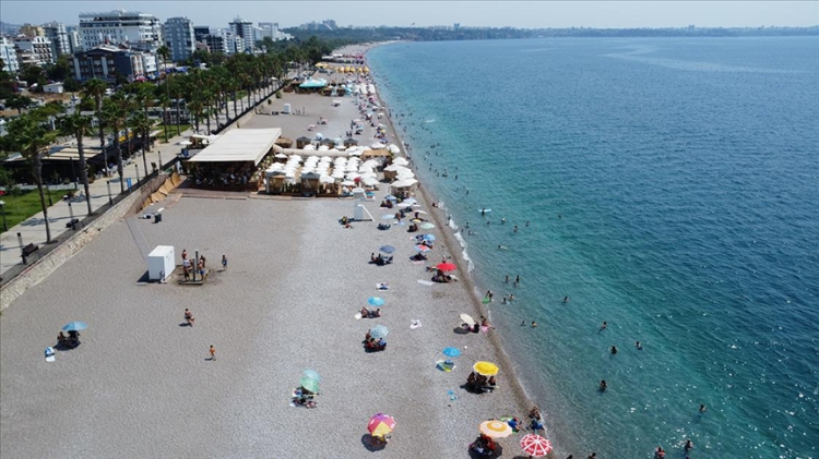 Antalya'da yüzde 83'e ulaşan nemden ve yüksek sıcaklıktan bunalanlar sahillerde yoğunluk oluşturdu.