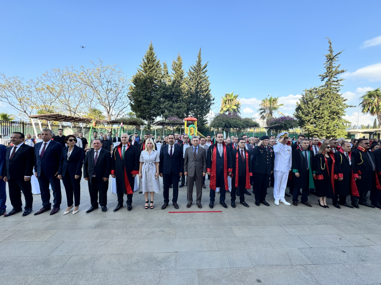 Saygı duruşunda bulunulması ve İstiklal Marşı'nın okunmasıyla başlayan törene, Adalet Komisyonu Başkanı Mustafa Tünay, hakimler, cumhuriyet savcıları ve avukatlar katıldı.