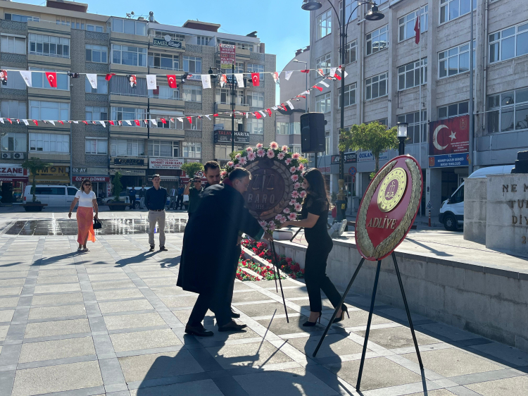 Isparta'da Adliye Sarayı bahçesinde düzenlenen törende, Isparta Cumhuriyet Başsavcısı Doç. Dr. Aydın Turhan ve Isparta Barosu Başkanı Ünsal Çankaya, Atatürk Anıtı'na çelenk sundu.