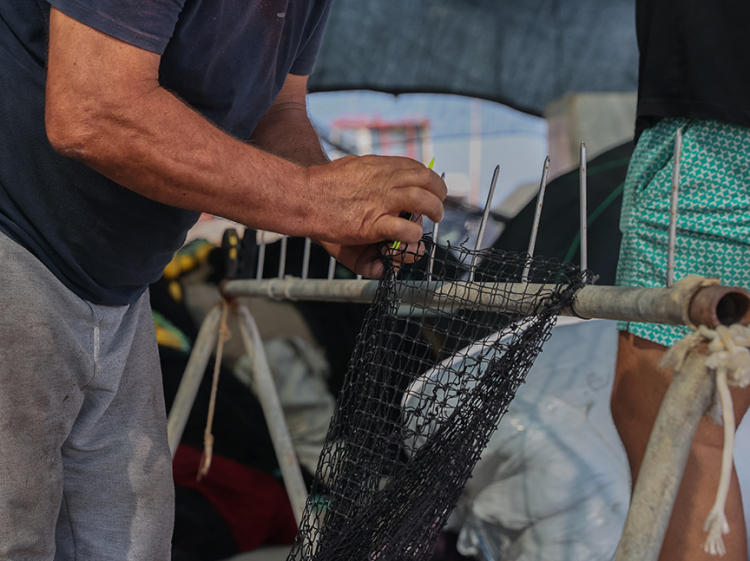 Sabahın erken saatlerinde başlayan ağ onarımı mesaisi gün batınca bitiyor. Günde yüzlerce metre ağ onaran balıkçılar, işlerini 1 Eylül öncesi bitirmeye çalışıyor.