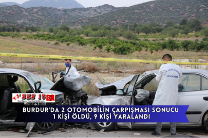 Burdur'un Yeşilova ilçesinde 2 otomobilin çarpışması sonucu 1 kişi öldü, 9 kişi yaralandı.