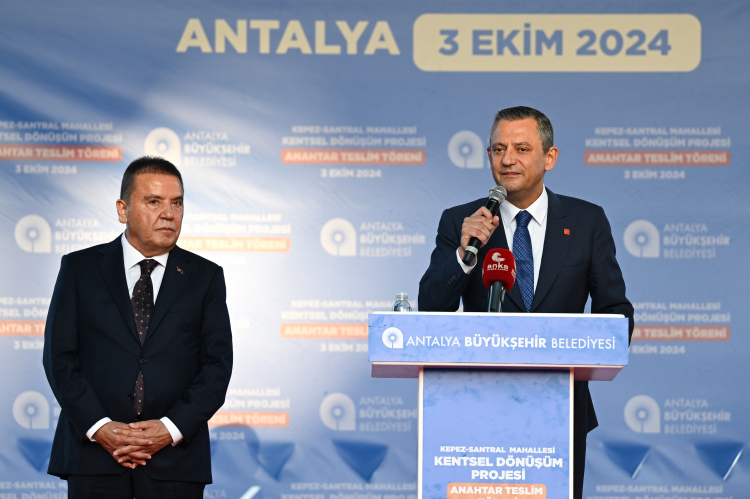 Özel, Antalya Büyükşehir Belediyesi Kepez ve Santral Mahallesi Kentsel Dönüşüm Projesi'nde 1068 dairenin hak sahiplerine teslim törenine katıldı.