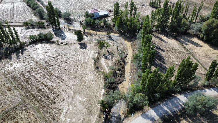 Sel sularının neden olduğu tahribat dron ile havadan görüntülendi.