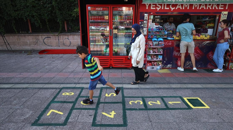 Zamanla çocuk yaşlı herkesin dikkatini çekmeye başlayan yerdeki oyun çizgileri, oynayanları çocukluğuna götürdü.
