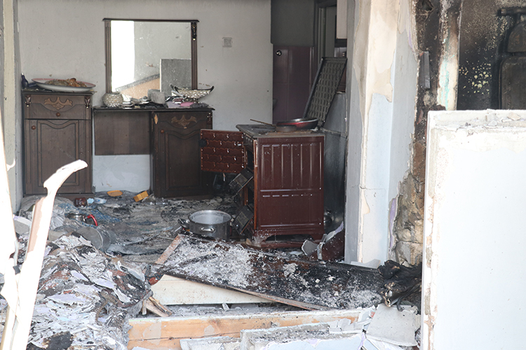İtfaiye ekiplerince söndürülen yangında, evde hasar oluştu, çevredeki bazı evlerin camları kırıldı.