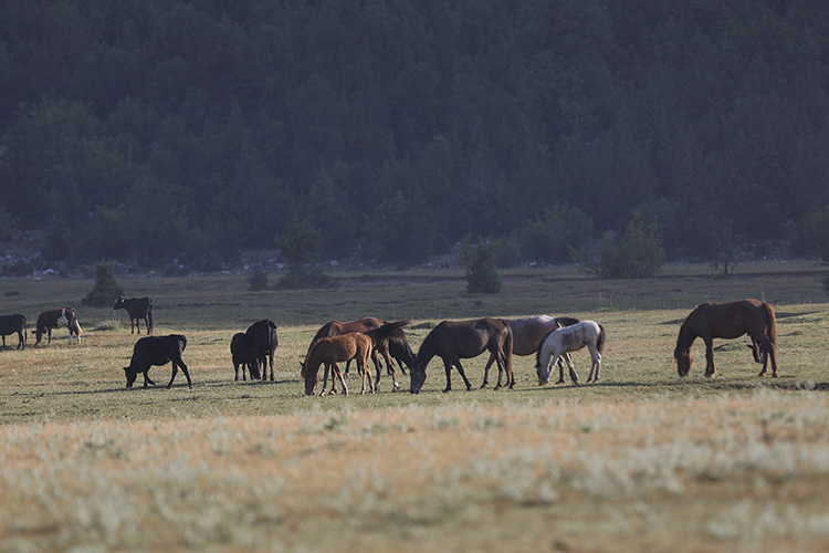 Bölgede besicilerin büyükbaş hayvanlarıyla otlayan yılkı atlarının popülasyonu her geçen yıl artıyor.