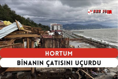 Rize'nin Çayeli ilçesinde hortum bir binanın çatısını uçurdu.
