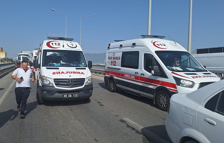 Manisa'nın Turgutlu ilçesinde fabrikalara personel taşıyan iki midibüs ile bir otobüsün çarpıştığı kazada çok sayıda işçi yaralandı.