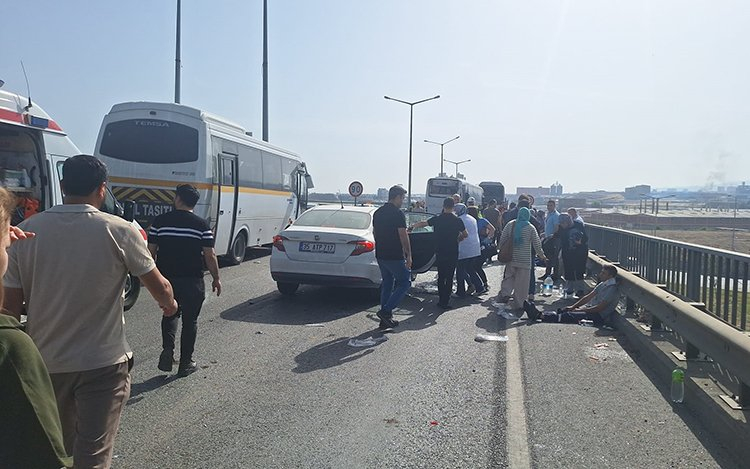 OSB'deki fabrikalara personel taşıdığı belirtilen üç araçtaki çok sayıda işçi yaralandı.
