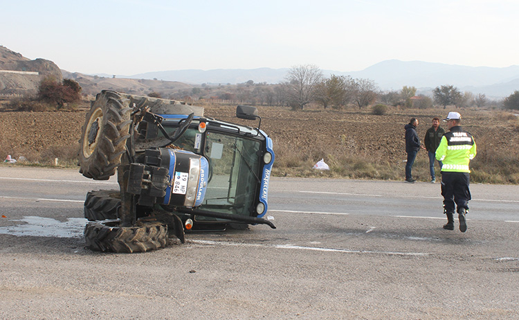 M.A. (54) idaresindeki 55 APJ 027 plakalı işçi servisi, Çorum-Osmancık kara yolu Kargı köyü mevkisinde, yola çıkan K.A'nın (26) kullandığı 19 HP 846 plakalı traktörle çarpıştı.