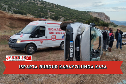 Edinilen bilgilere göre, bugün saat 18.45 sularında Isparta Burdur Karayolunda meydana gelen trafik kazasında F.B yönetimindeki 15 EK 977 plakalı otomobil, sürücüsünün direksiyon hakimiyetini kaybetmesi sonucu yoldan çıktı ve şarampole savruldu