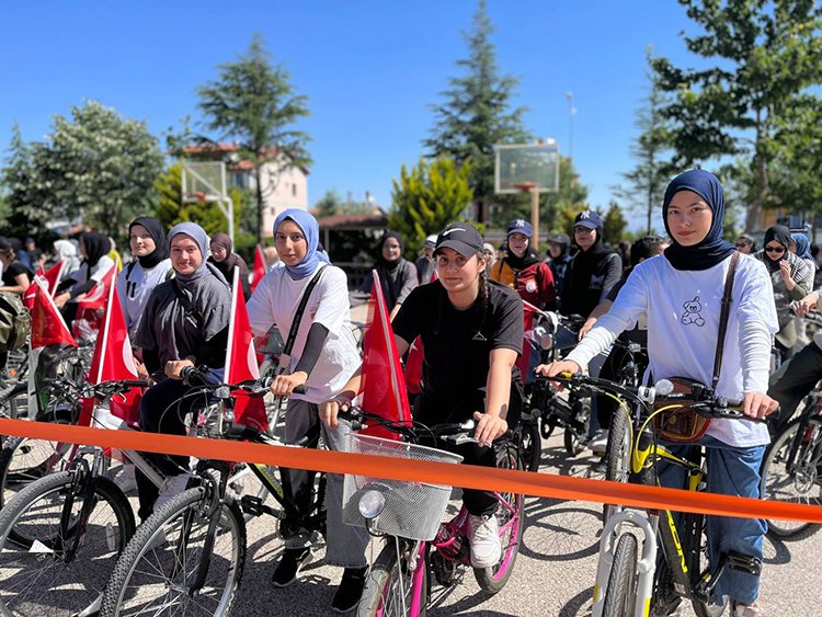 Buradan hareket eden katılımcılar, yaklaşık 8 kilometre pedal çevirdikten sonra tekrar okul bahçesine döndü.