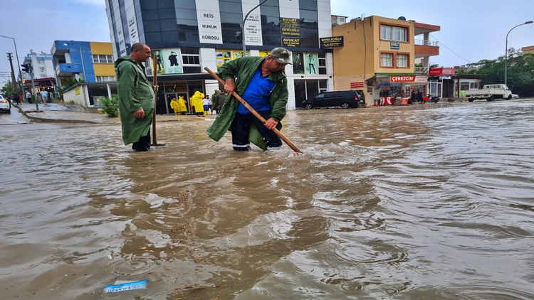 Osmaniye'nin Kadirli ilçesinde etkili olan sağanak nedeniyle cadde ve sokaklarda su birikintileri oluştu, bazı ev ve iş yerlerini su bastı.