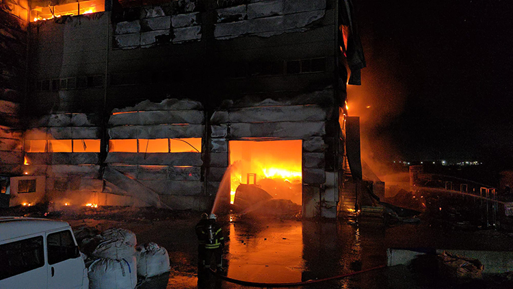 Yalıboyu Organize Sanayi Bölgesi'nde faaliyet gösteren bir kozmetik fabrikasında henüz belirlenemeyen nedenle yangın çıktı.