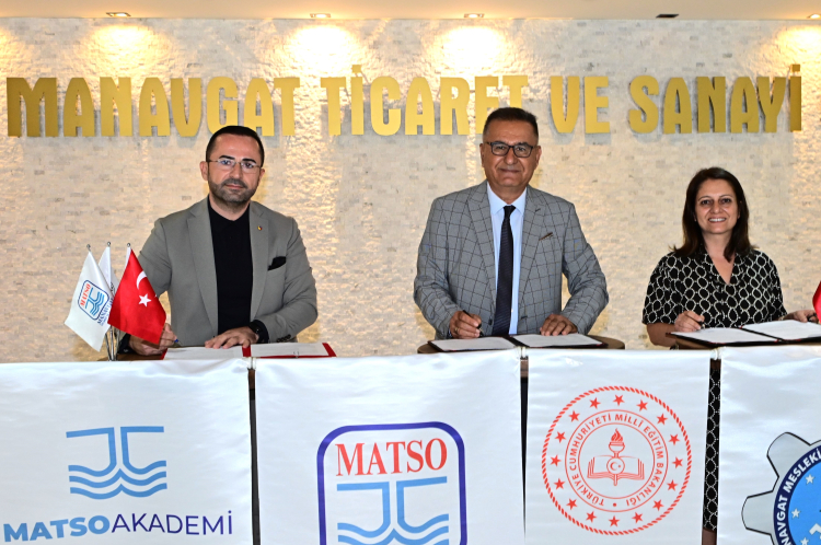 Konuşmaların ardından protokol, MATSO Başkanı Güngör, İlçe Milli Eğitim Müdür Vekili Sevim ile Manavgat Mesleki ve Teknik Anadolu Lisesi Müdürü Şenay Günay tarafından imzalandı.