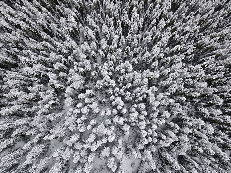 Ormanlık alanların karla buluşması, dron ile görüntülendi.