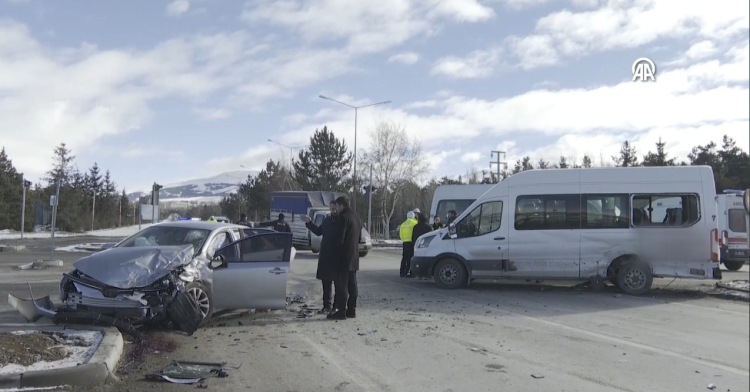 Erzurum'da minibüs ile otomobilin çarpışması sonucu 6 kişi yaralandı.