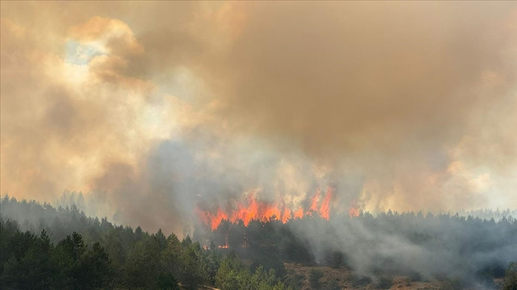 Kastamonu'da ormanlık alanda çıkan yangına ekipler karadan ve havadan müdahale ediyor.