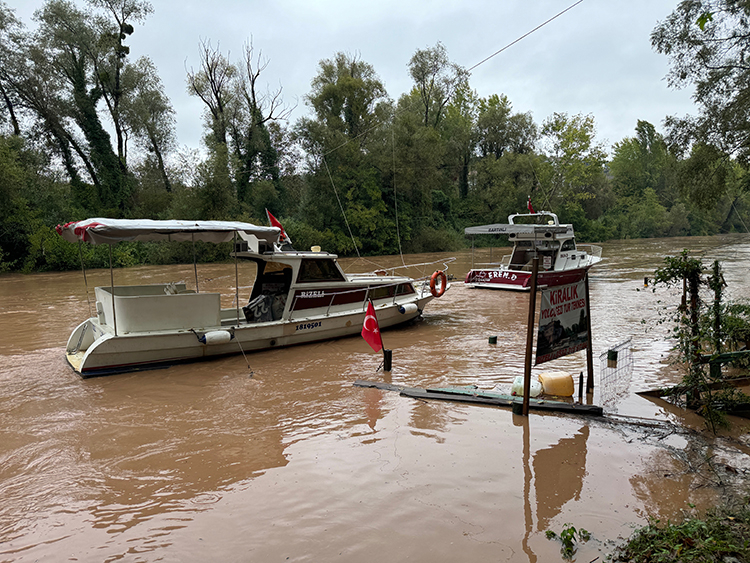 Öte yandan sağanak nedeniyle Yalı mevkisindeki iskeleler, Çağlayan piknik alanındaki yürüyüş yolları ve bazı büfeler de su altında kaldı.