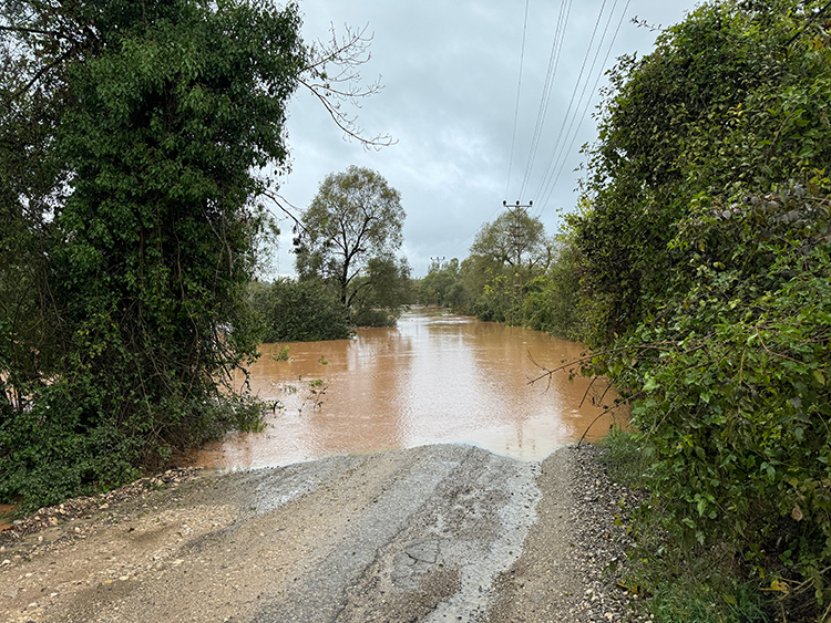Sağanak nedeniyle Arıt Çayı'nın debisinin yükselmesiyle Tabanözü, Kabagöz, Fırınlı, Sipahiler, Hasanlar, Epçiler ve Akçalı köylerine ulaşım sağlanan ana güzergah yolları suyla kaplandı.